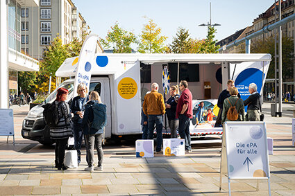 Das BMG hat eine Aufklärungskampagne zur elektronischen Patientenakte initiiert , in deren Rahmen auch ein Infomobil für mehrere Wochen durch Deutschland tourte. Quelle: BMG/ThomasEcke