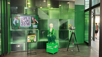 Ein besonderes Highlight stellte darüber hinaus die Zusammenarbeit mit der Apotheke am Berliner Hauptbahnhof dar, in deren Rahmen die Kampagne über eine außergewöhnliche Deko-Aktion im monochromen Style in der Brandfarbe Buscopan®-Grün mit einer lebendigen Schaufensterpuppe im High-Fashion-Outfit visualisiert wurde. Hierzu wurden die Apotheken-Schaufenster entsprechend komplett foliert. Entworfen wurde das ungewöhnliche Konzept von einem Visual Merchandiser, der sonst die Schaufenster-Gestaltung von Louis Vuitton übernimmt. Die Verbindung zwischen InStyle Lounge und Apotheke stellte ein Runway dar, auf dem Models in Buscopan®-Grün gekleidet hin und her flanierten.