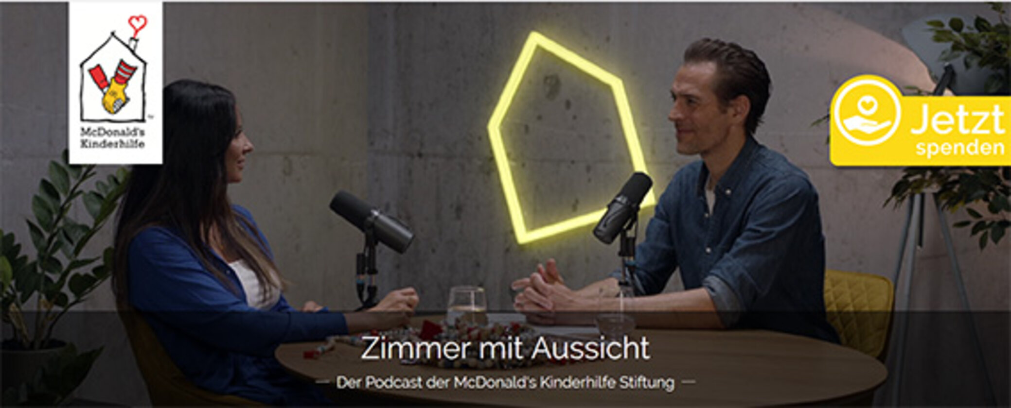 Die ersten Episoden des Podcasts „Zimmer mit Aussicht“ sind nun auf Spotify und auf allen gängigen Podcast-Plattformen online. Die Hörer:innen und Zuschauer:innen erwartet künftig immer zum Monatsende eine neue Episode. „Zimmer mit Aussicht“ erzählt von Hoffnung, Rückschlägen, kleinen Wundern – und von der Kraft, gemeinsam durch schwere Zeiten zu gehen. Es werden Familien zu Gast sein, die mit ihrer Geschichte anderen Familien, die gerade akut betroffen sind Mut machen, Ärzt:nnen und andere Expert:innen, haupt- und ehrenamtliche Mitarbeiter:innen und auch die prominenten Schirmherren der McDonald' Kinderhilfe Stiftung.